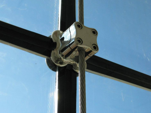 點(diǎn)支撐玻璃幕墻:整個(gè)結(jié)構(gòu)體系由張拉索/桿、不銹鋼撐桿及玻璃連接爪件等組成。幕墻整體通透感較強(qiáng),支撐體系簡(jiǎn)潔大方,具有極強(qiáng)的裝飾功能。